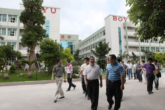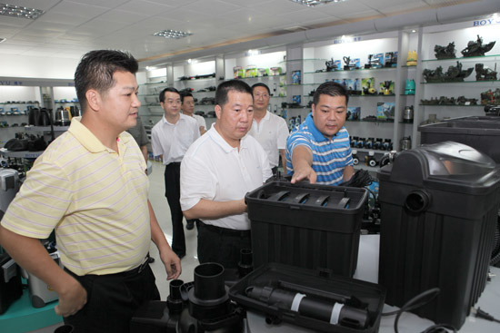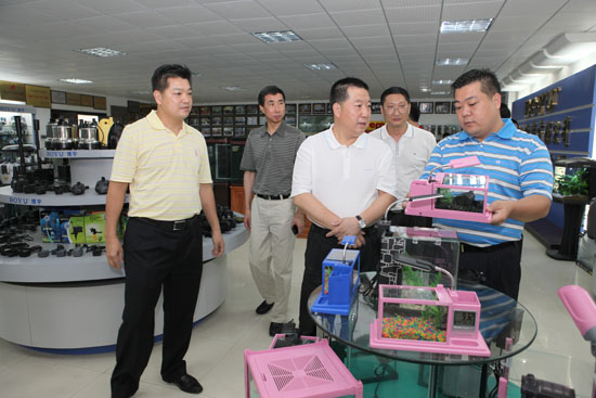 在參觀和聽取公司余總經理的詳細介紹后,雷健民對我公司產品通過了多個國際質量安全認證,銷售網絡遍布全球80多個國家和地區,博宇品牌商標被評為“中國馳名商標”、“廣東省著名商標”、“廣東省名牌產品”、“廣東省出口名牌”等所取得的成績表示贊賞,同時,他希望我公司要再接再厲,加大科研投入和產品創新力度,研制開發更多高品質、高水平的產品,搶占國內外市場。要借助省級水族器材檢測中心這一平臺,按照國家及國際的質量認證標準、審核標準,加大投入,擴大生產規模,把企業做強做大,形成產業集群,使水族機電產業真正成為饒平、乃至全市工業經濟的支柱產業之一。